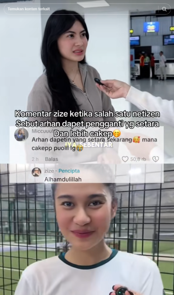 Sementara itu, Azizah Salsha alias Zize tak tinggal diam. Ia aktif membalas komentar netizen di postingan atau story Instagram-nya yang menyinggung perbandingan tersebut. Respons Zize cenderung santai dan positif, seperti mengucap “Alhamdulillah” atau syukur atas apa yang ada, tanpa terpancing emosi berlebih. Beberapa netizen bahkan memuji sikap dewasa Zize yang memilih fokus pada kebahagiaan sendiri, terutama setelah ia juga diisukan go public dengan Nadif Zahiruddin lewat video mesra di IG exclusive.